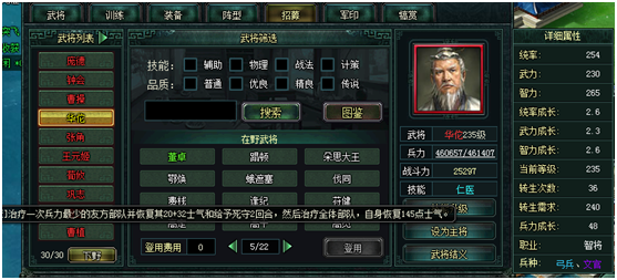 能治疗的武将很多,比如庸医张鲁现在已经成治疗了,刚开始接触这游戏的时候过了张鲁就招来打酱油,然后再上各国的威望将孙休 孙乾 杨修,这里我们不一一叙述,只说有代表性的几个武将。